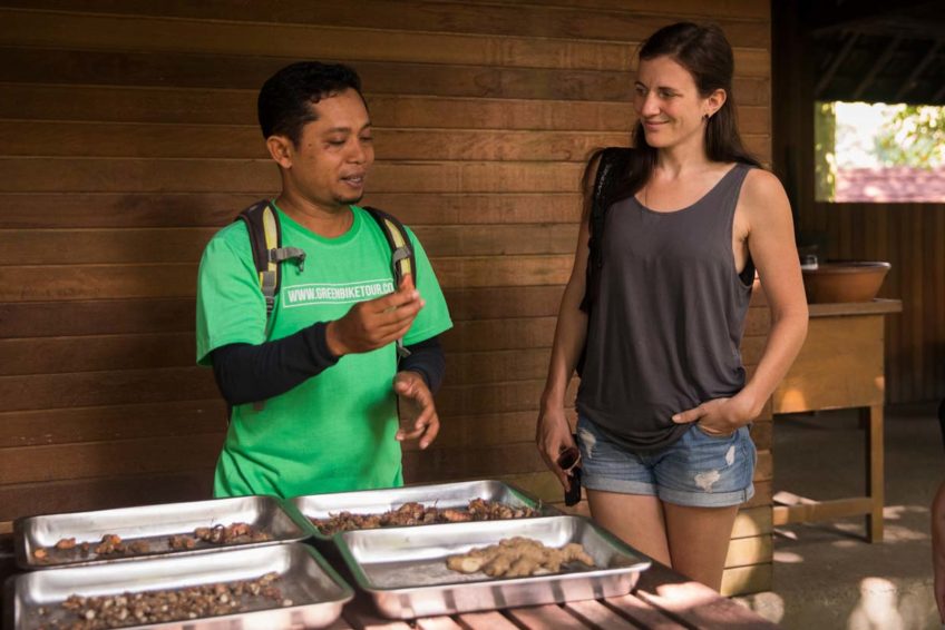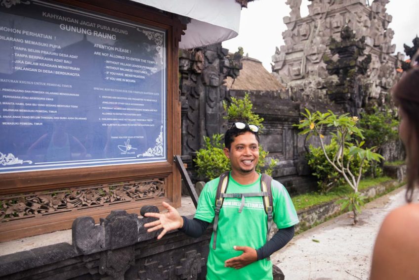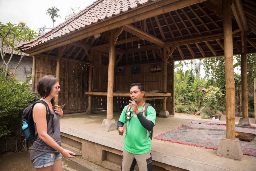 Deine Fahrradtour startet im Abuan Village. Von hier geht es meist bergab auf gemütlichen Radwegen durch kleine Dörfer und grüne Reisfelder. Im Taro Village machst du einen kurzen Stop und besuchst eine der lokalen Familien, die von Greenbike Bali unterstützt werden. Dein Guide erklärt dir den Aufbau einer typisch balinesischen Familienhauses – genannt Kompong – und erklärt dir typische Zeremonien, die im Familienalltag stattfinden.
