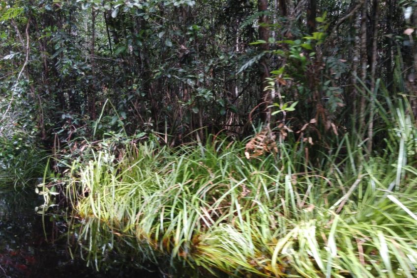 Der Sebangau Nationalpark in Zentral-Kalimantan gehört zu den besonderen Torfmoorwäldern Indonesiens mit seinen Schwarzwasser-Flüssen. Jene Wälder binden eine große Menge an Kohlenstoff und sind demnach aus klimatischer Sicht besonders wertvoll..