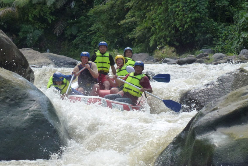 Der eigentliche Raftingflussabschnitt beträgt 9 Kilometer Länge und ist mit einer kurzen Pause in gut zwei Stunden zu bewältigen. Adrenalin-Junkies kommen aus der ganzen Welt zum Raften nach Nord-Sulawesi. Nach einer gründlichen Sicherheitseinweisung geht es los. Ultimatives Wildwasser-Rafting mit Bezwingen meterhoher Wellen, Bootflips, steile Abfahrten, Walzen, Wogen, Hindernisse, …